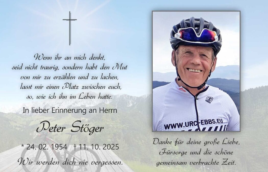 Peter Stöger, unser langjähriger Obmann ist am Samstag, dem 11. Oktober 2025, nach langer, schwerer Krankheit von uns gegangen.
